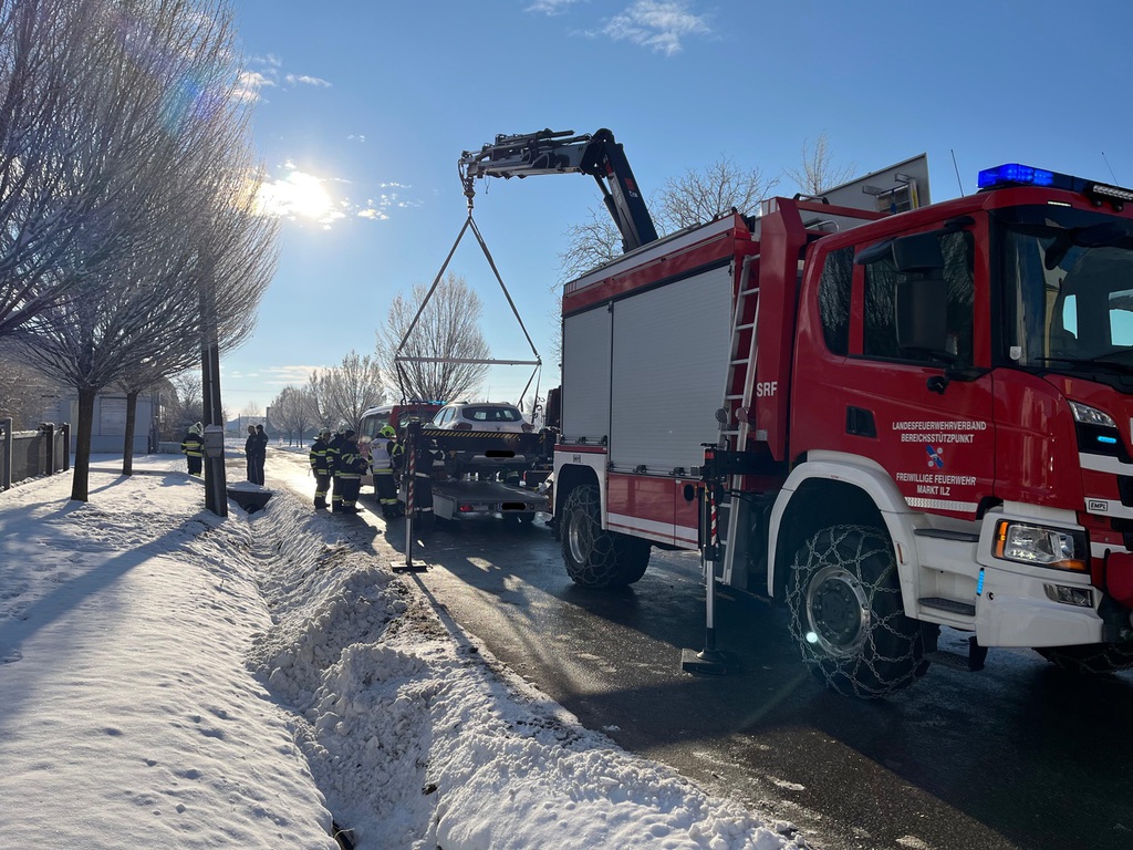 Nach dem Absichern der Unfallstelle wurde der Brandschutz aufgebaut und die involvierten Personen von FW-Sanitätern bis zum Eintreffen des Roten Kreuzes betreut. Aufgrund der Tatsache das ein Fahrzeug ein Elektrofahrzeug war, wurde für die schonende Fahrzeugbergung das SRF-Kranfahrzeug der Feuerwehr Markt Ilz nachalarmiert.