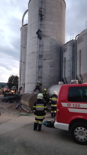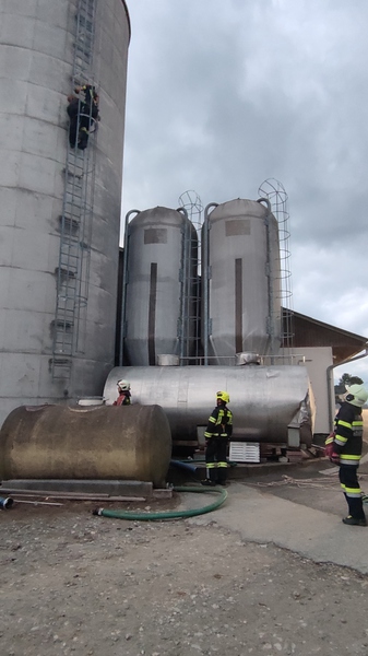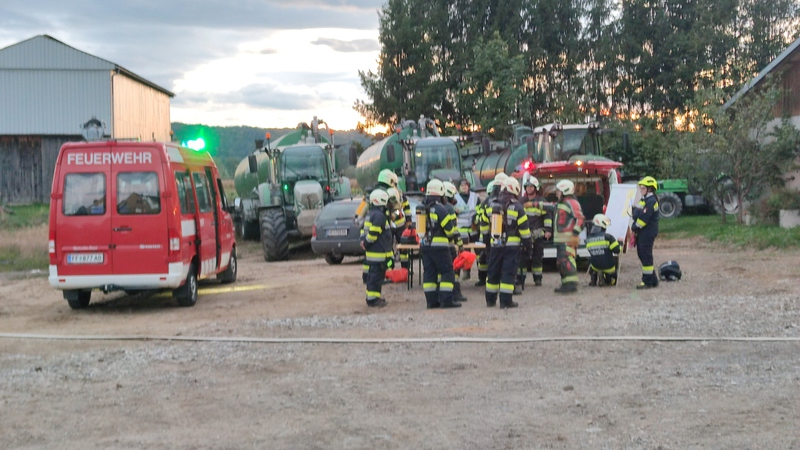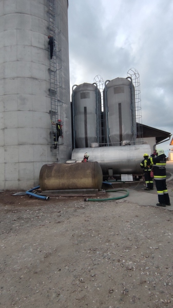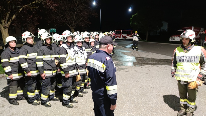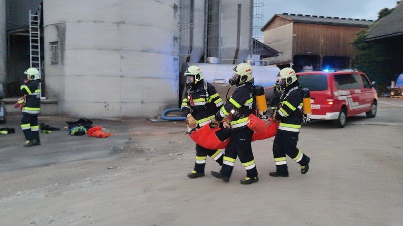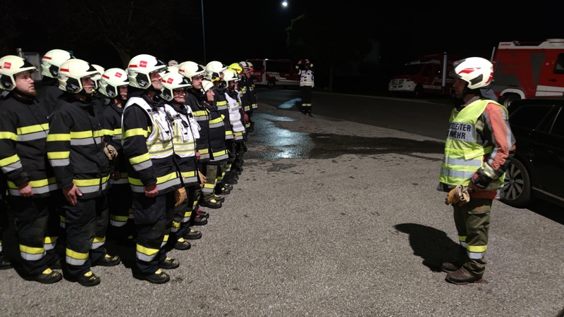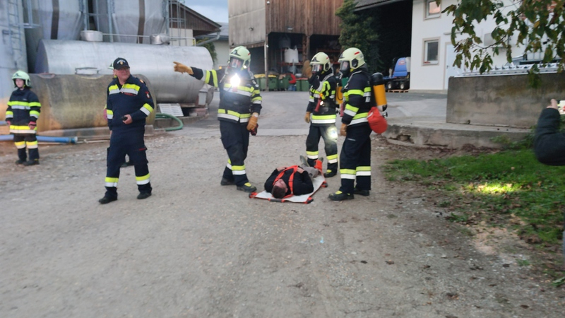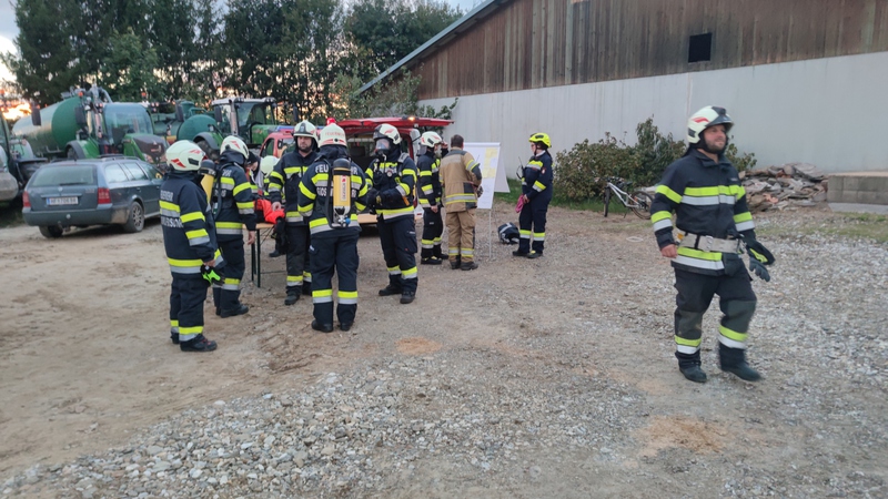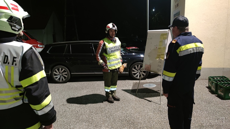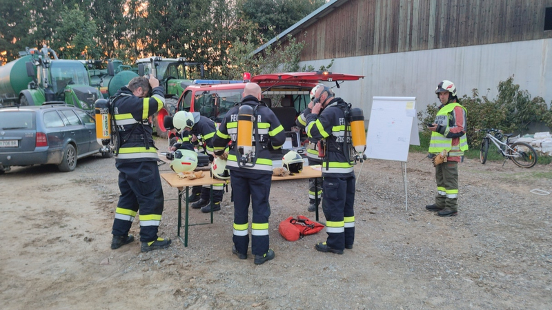 Die Übungsannahme war ein Zimmerbrand mit mehreren vermissten Personen in einem landwirtschaftlichen Betrieb. Am "Einsatzort" angekommen, zeigte sich außerdem, dass auch eine verletzte Person vom Hochsilo zu retten ist. Schnell wurden eine Einsatzleitung sowie ein Atemschutzsammelplatz und ein Sanitätsplatz eingerichtet. Anschließend wurden die Aufgaben vom Übungsleiter HBI Hans-Christian Stranzl verteilt.