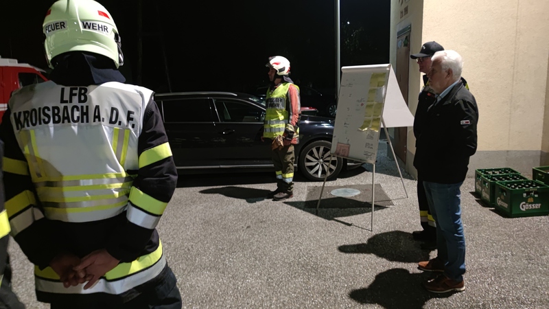 Bei der anschließenden Nachbesprechung wurden die Erfahrungen der Übung im Beisein von BR Gerhard Engelschall sowie Bürgermeister Franz Zehner besprochen.