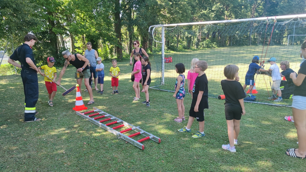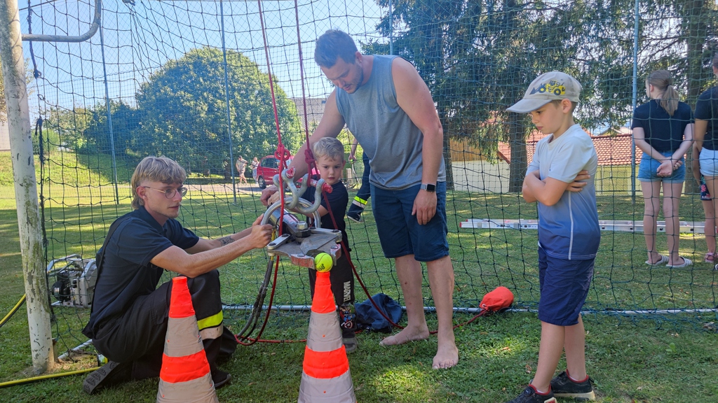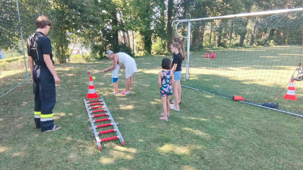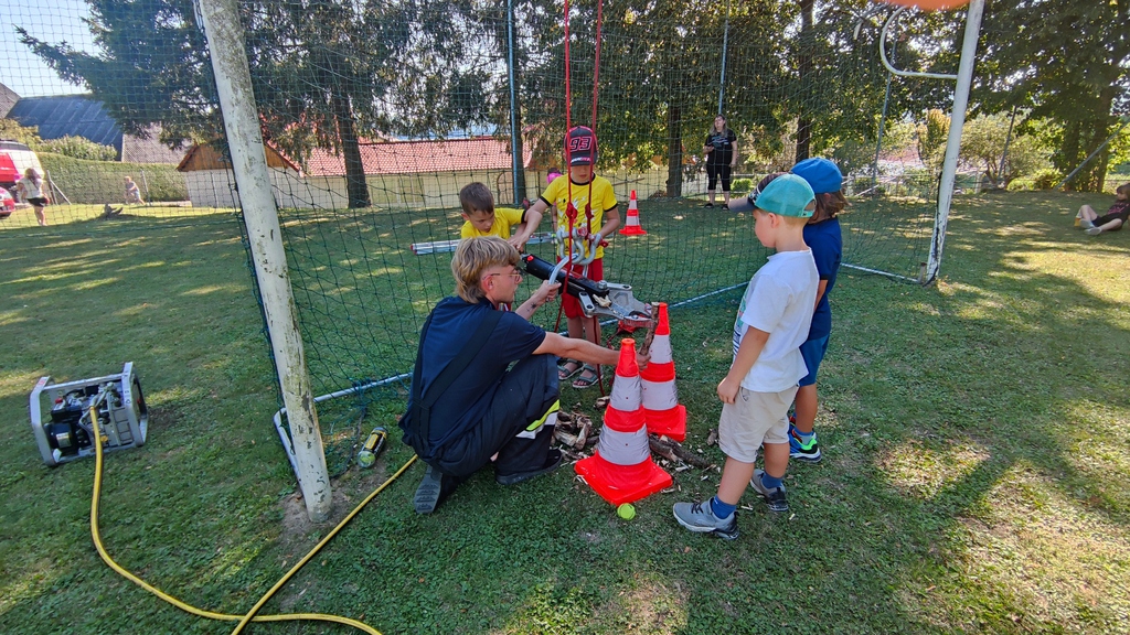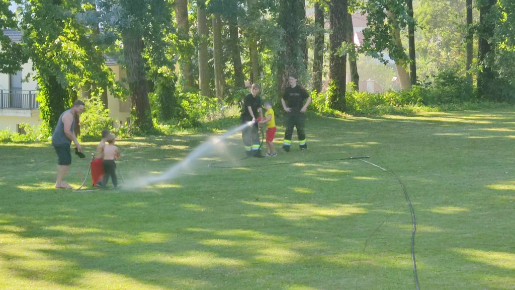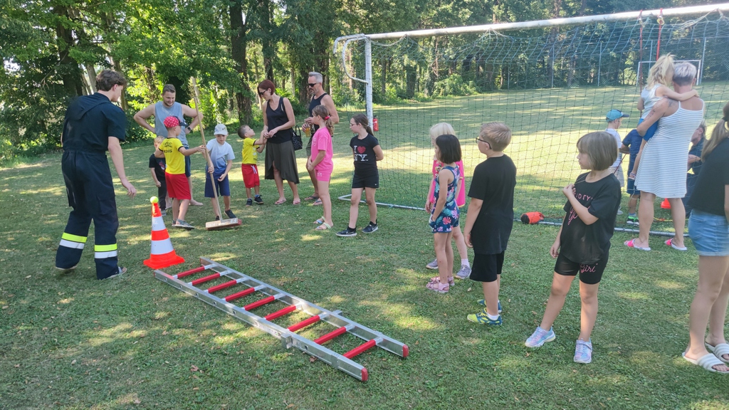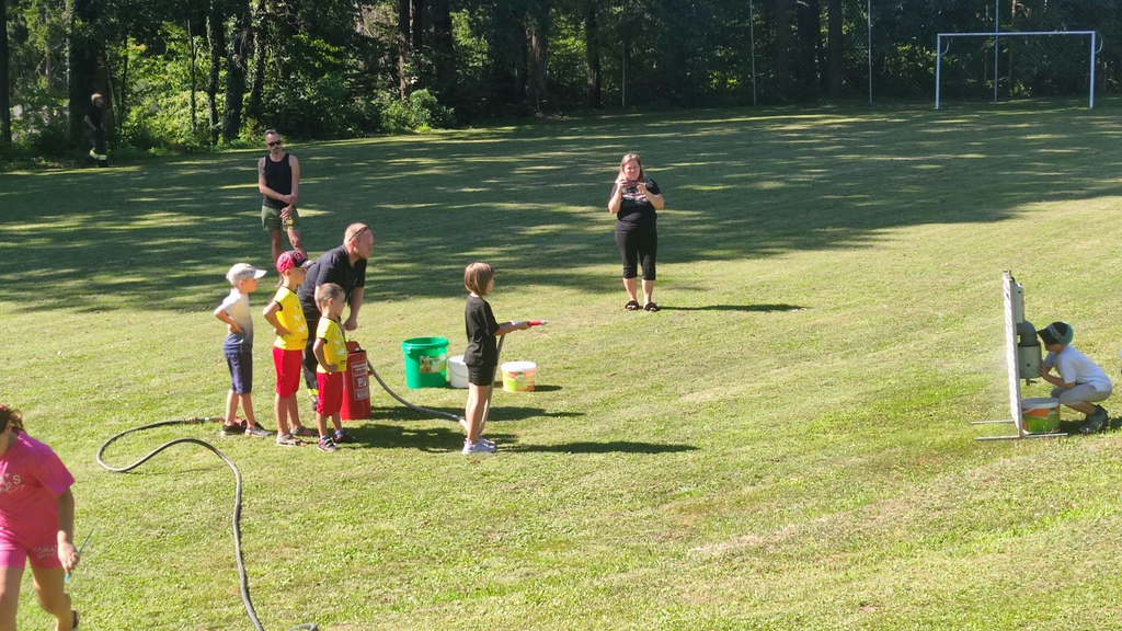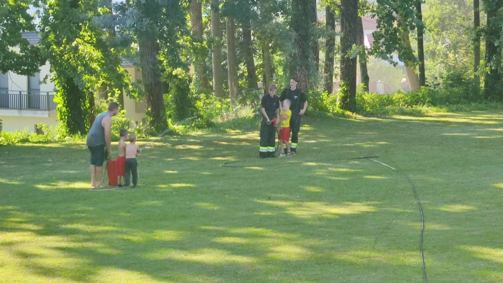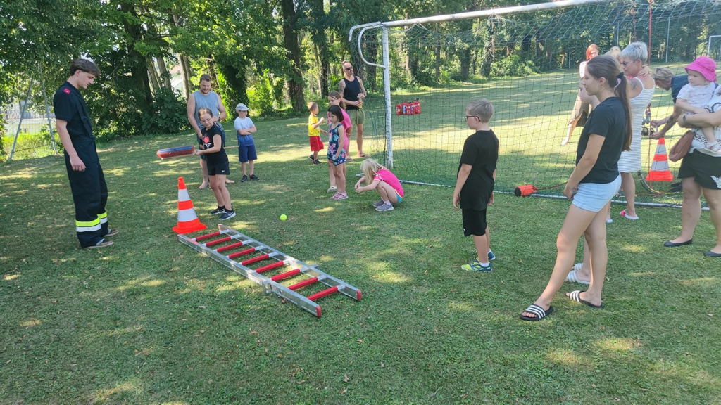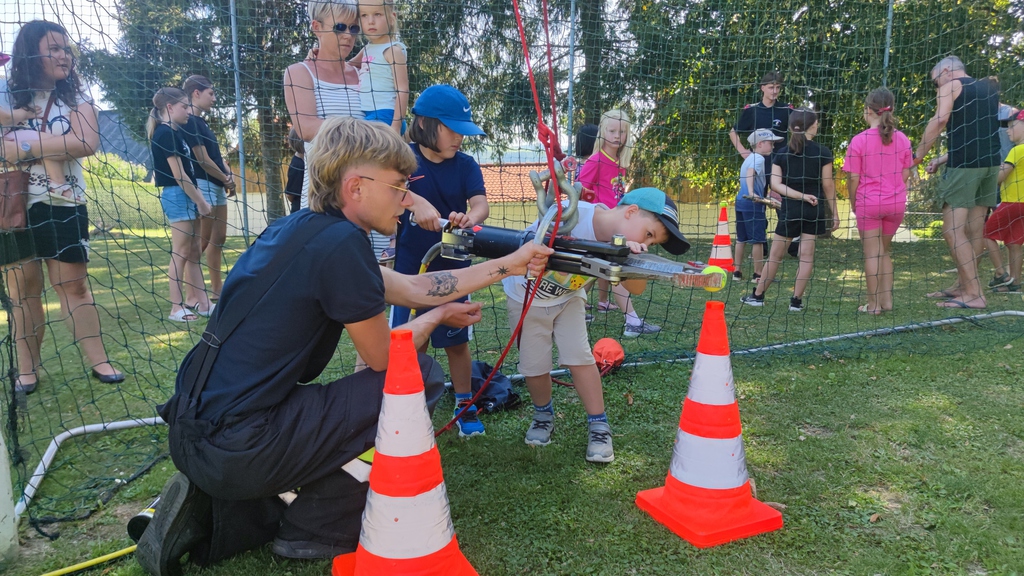 Bei Spiel, Spannung und Action konnten die Besucher die Feuerwehr hautnah erleben: Eine Fahrt mit dem Feuerwehrauto, erste Versuche mit dem Feuerwehrlöscher und verschiedene Geschicklichkeitsspiele sorgten für Begeisterung. Bei sommerlichen Temperaturen war vor allem eines wichtig – Abkühlung für die Kinder, die natürlich nicht zu kurz kam.