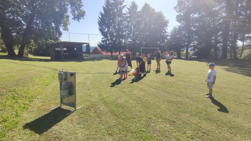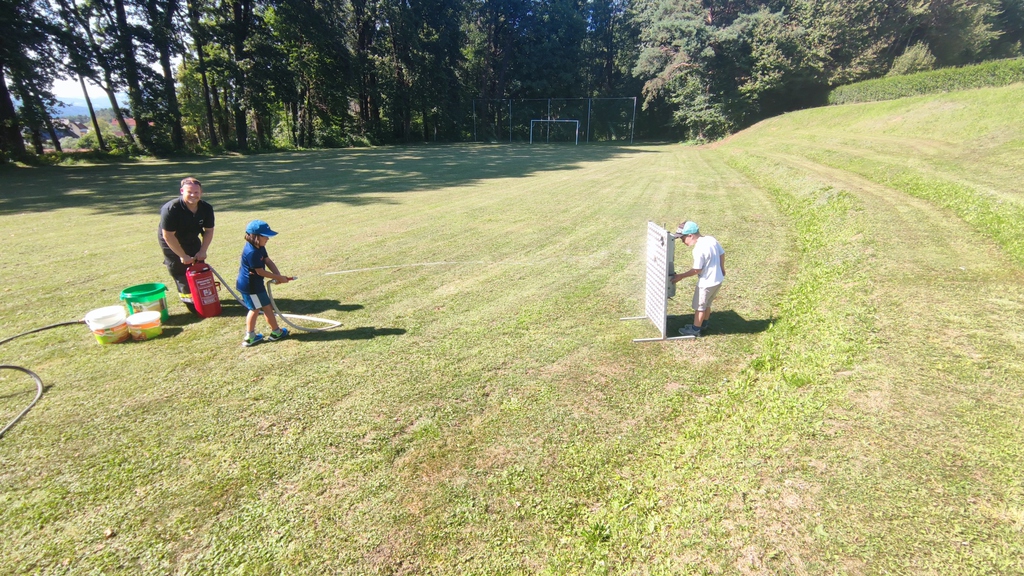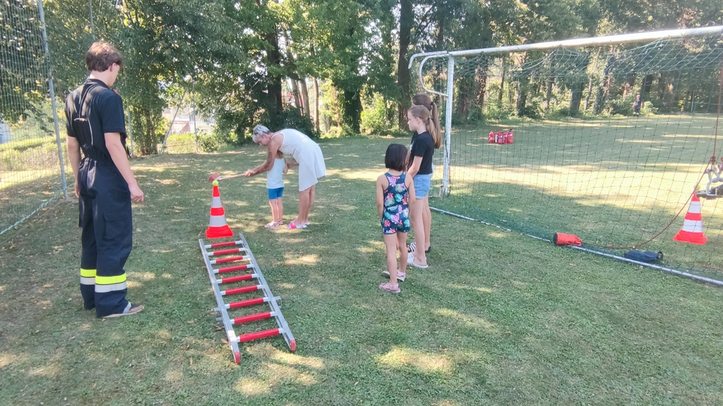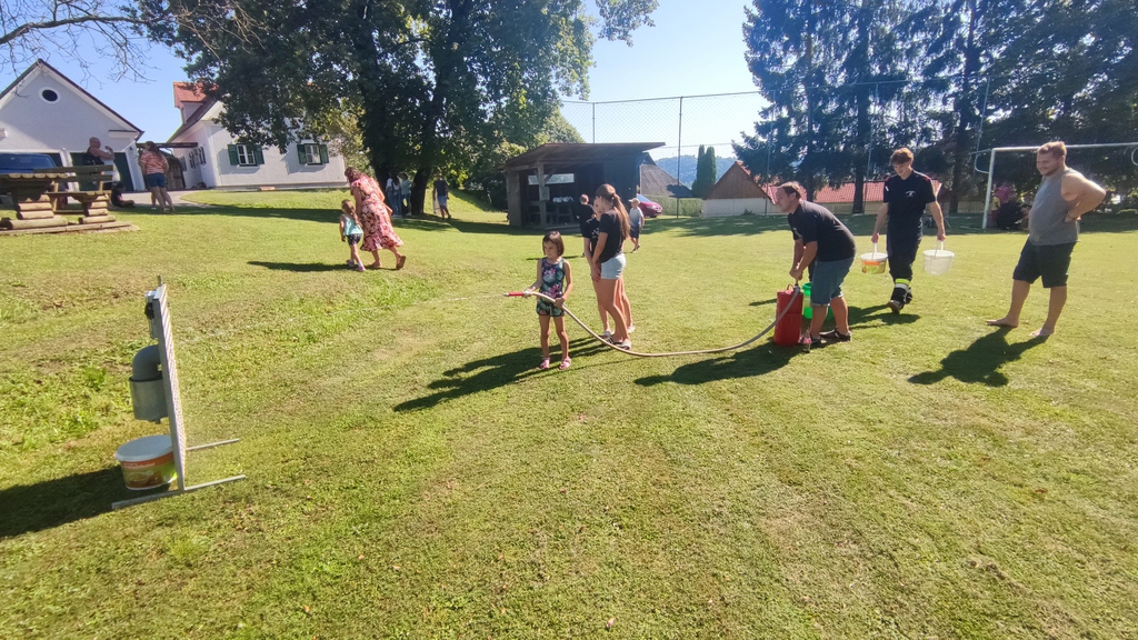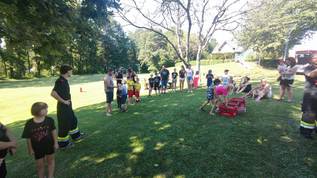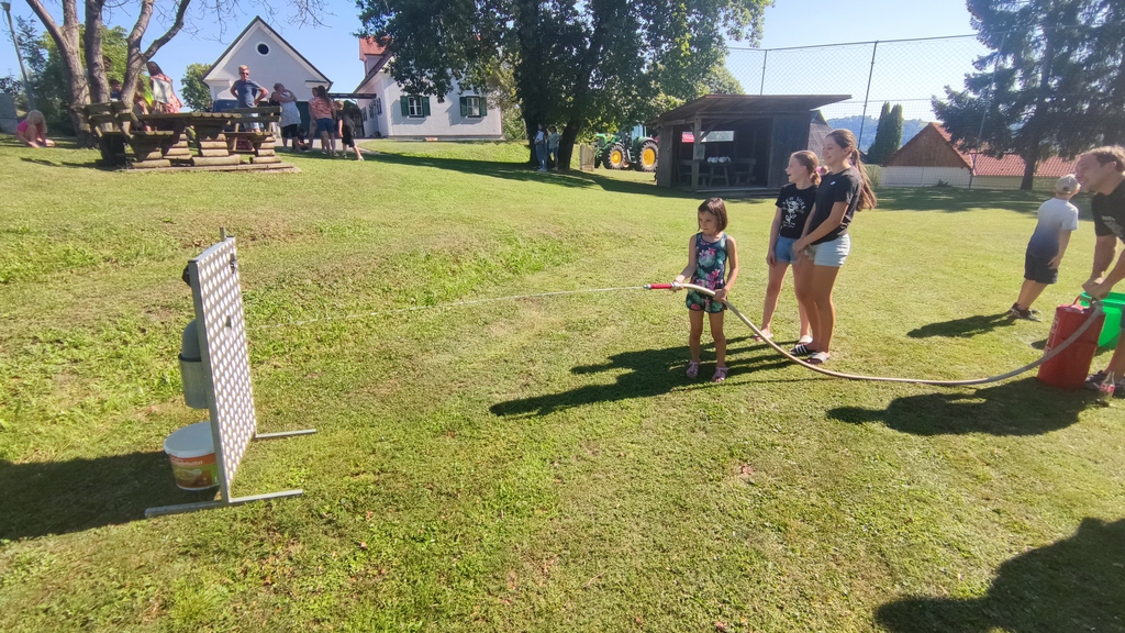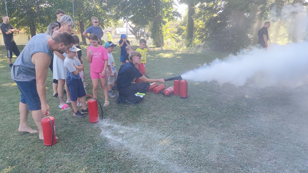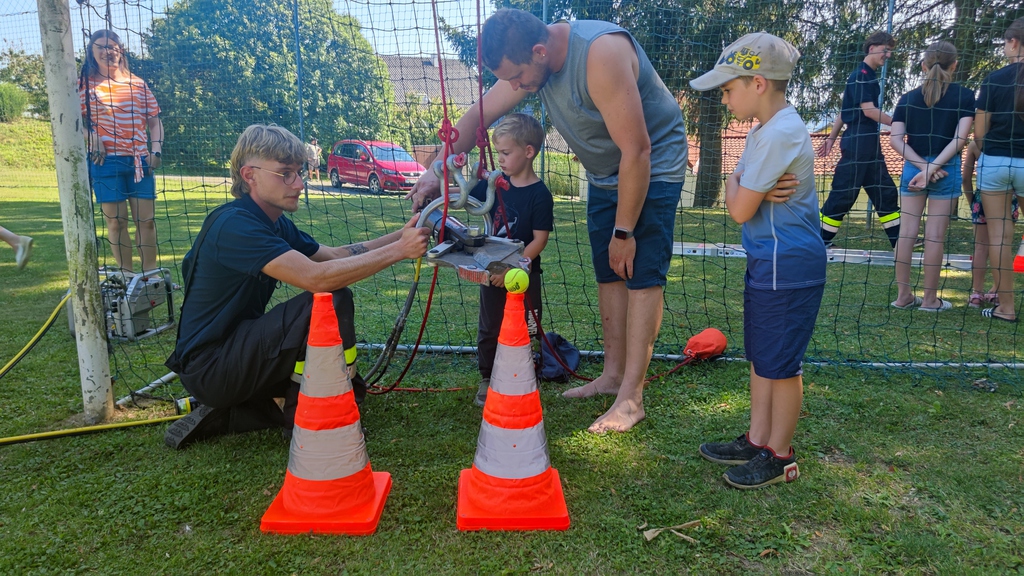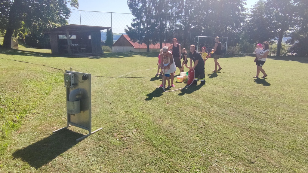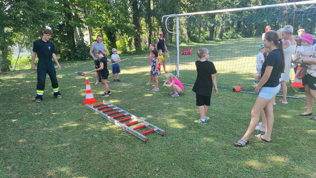 Bei Spiel, Spannung und Action konnten die Besucher die Feuerwehr hautnah erleben: Eine Fahrt mit dem Feuerwehrauto, erste Versuche mit dem Feuerwehrlöscher und verschiedene Geschicklichkeitsspiele sorgten für Begeisterung. Bei sommerlichen Temperaturen war vor allem eines wichtig – Abkühlung für die Kinder, die natürlich nicht zu kurz kam.