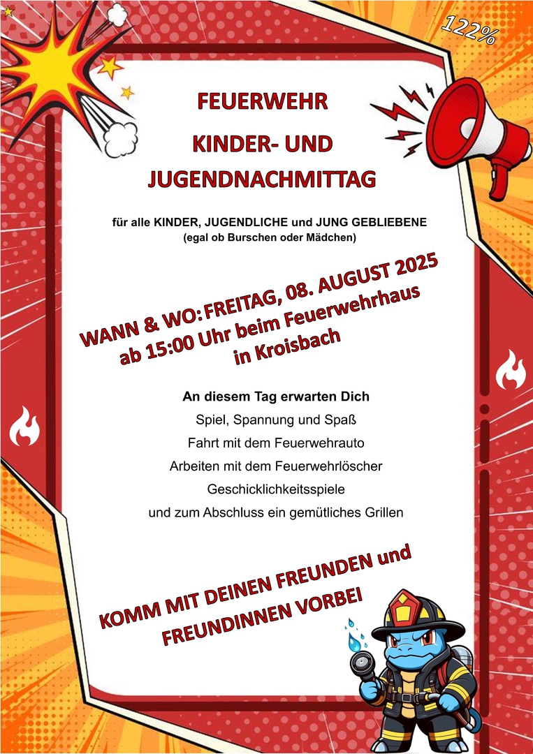 Unter dem Motto „Cool genug für ein heißes Hobby?“ lud die Feuerwehrjugend Kroisbach a.d.F. zu einem spannenden und abwechslungsreichen Tag ein. Zahlreiche Kinder, Jugendliche und Junggebliebene folgten der Einladung – der Tag war sehr gut besucht.